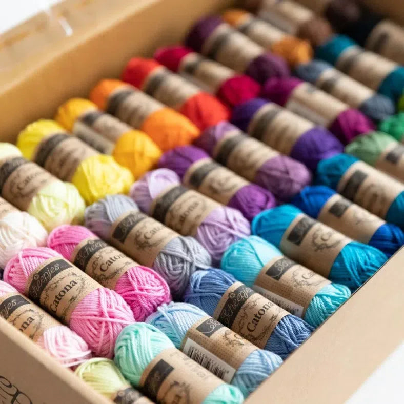 This stunning Scheepjes Catona Colour pack contains 109 x 10g balls of mercerised cotton.