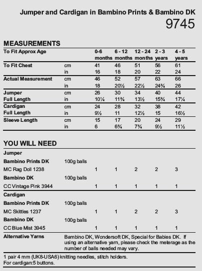 Stylecraft Bambino Pattern 9745