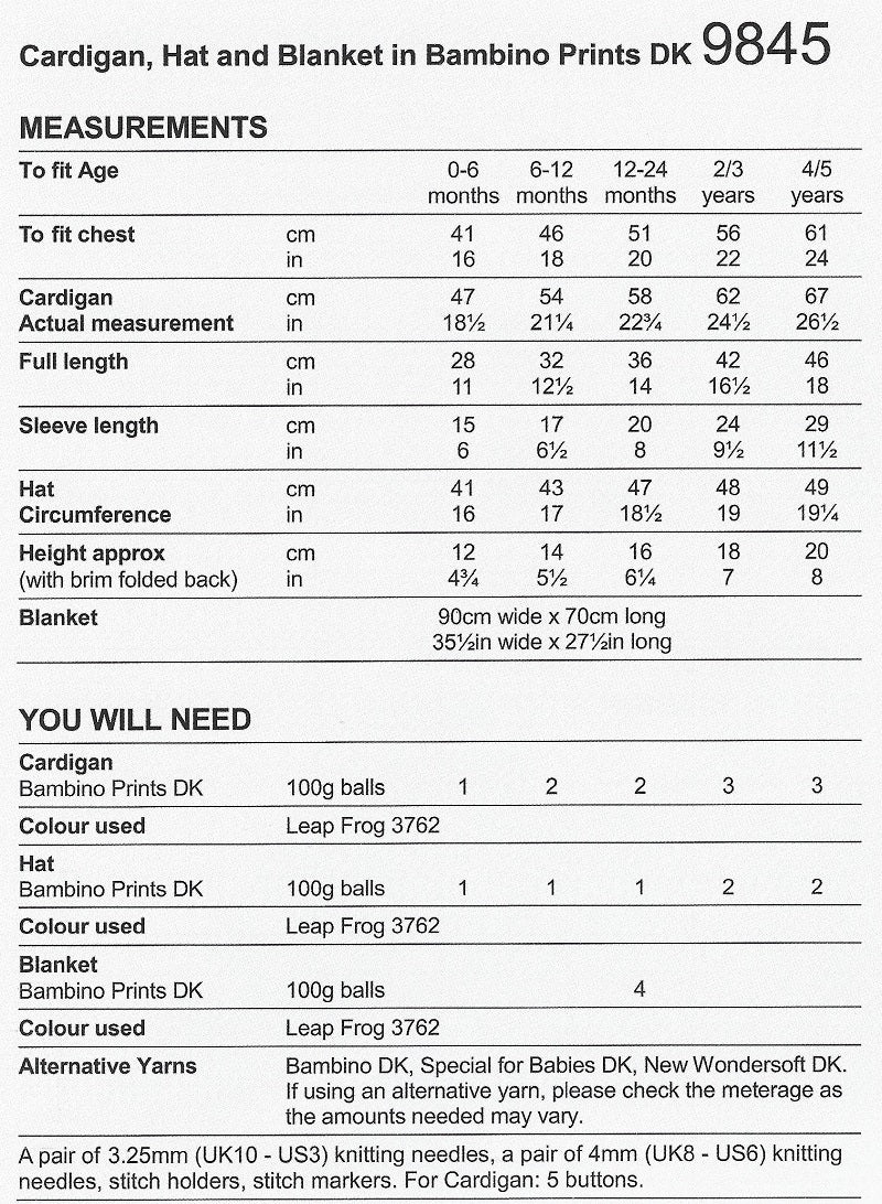 Stylecraft Bambino Pattern 9845
