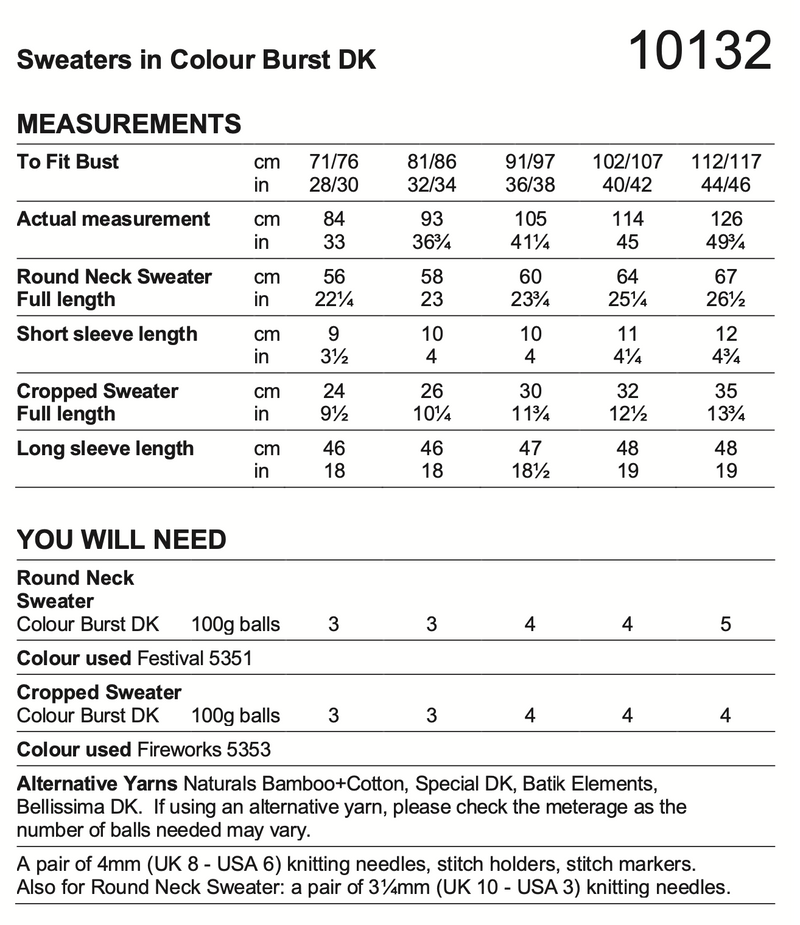 Stylecraft Colour Burst Dk Pattern (Knit) 10132