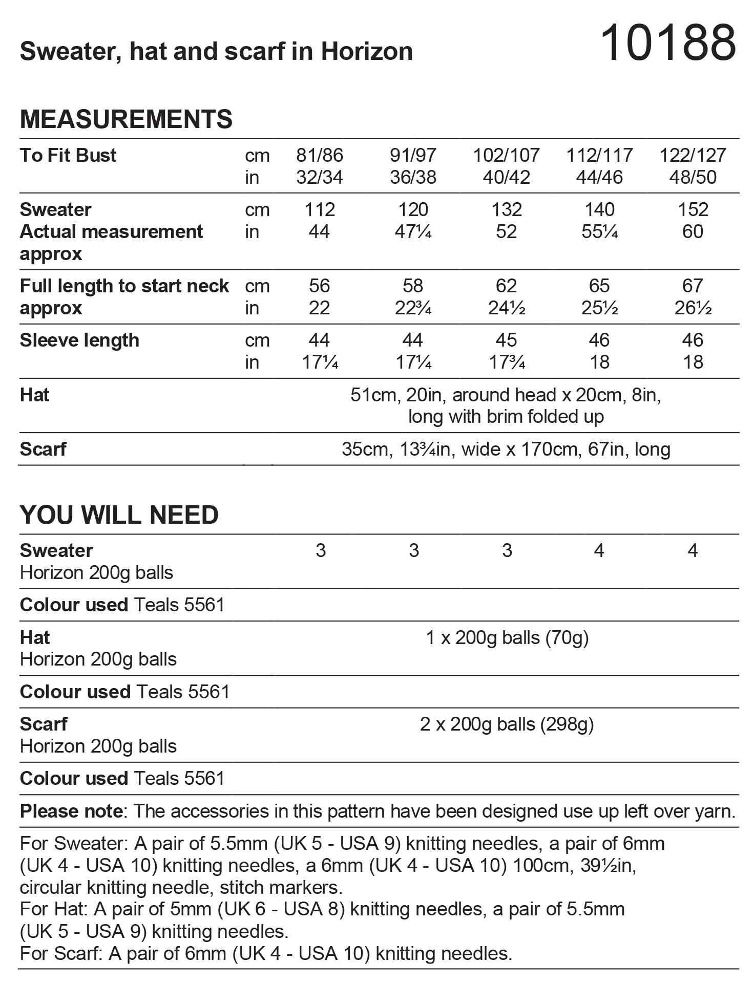 Stylecraft Horizon Chunky Pattern 10188 Knit Sweater, Hat and Scarf