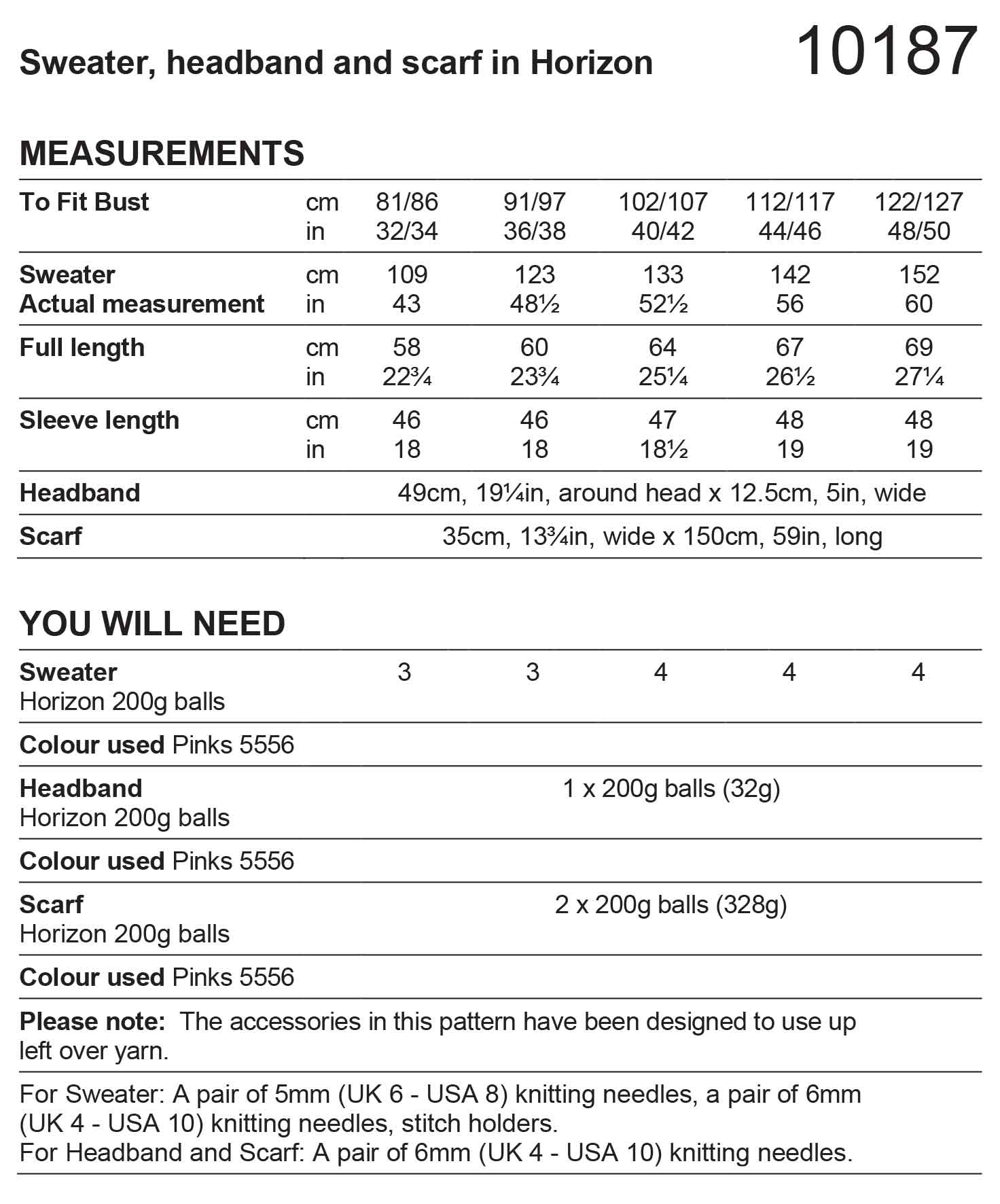 Stylecraft Horizon Pattern 10187 Knit Sweater, Scarf and Headband