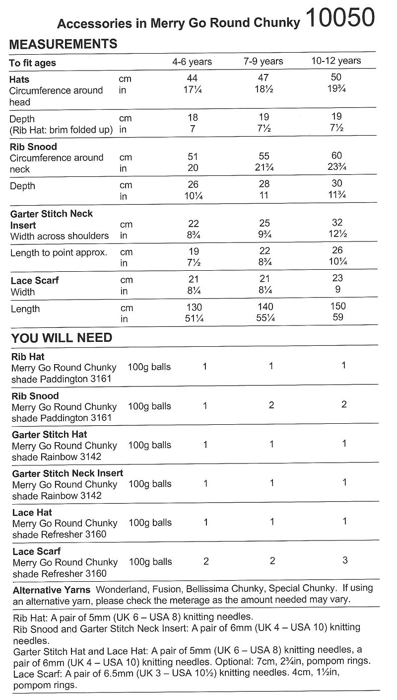 Stylecraft Merry Go Round Chunky Pattern 10050 Kids Accessories